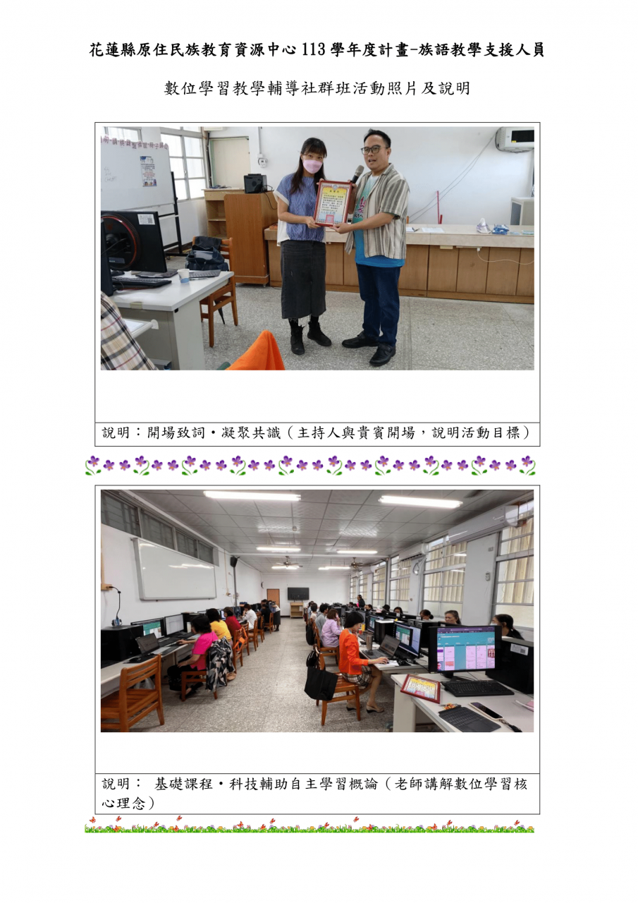 花蓮縣原住民族教育資源中心 113 學年度計畫-族語教學支援人員教學輔導社群班